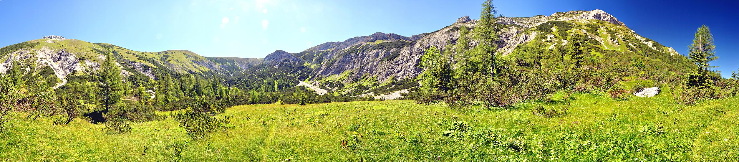 Am Melkboden, nördlich des Windbergs, Schneealpenmassiv. 270 Grad Panoramabild.