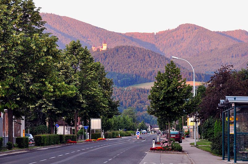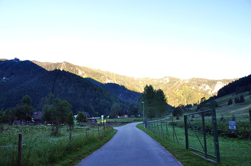 Wir treffen uns um 5:20 in Gloggnitz, um dann mit einem Auto gemeinsam weiter zu fahren. Blick vom Parkplatz beim Freibad zur ...