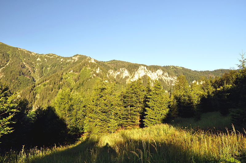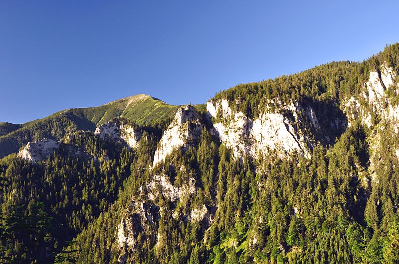 Zurück in Hinternasswald - ein letzter Blick, durch die Reißtalklamm zum Gamseck (1.857 m), welches unmittelbar der Heukuppe vorgelagert ist.