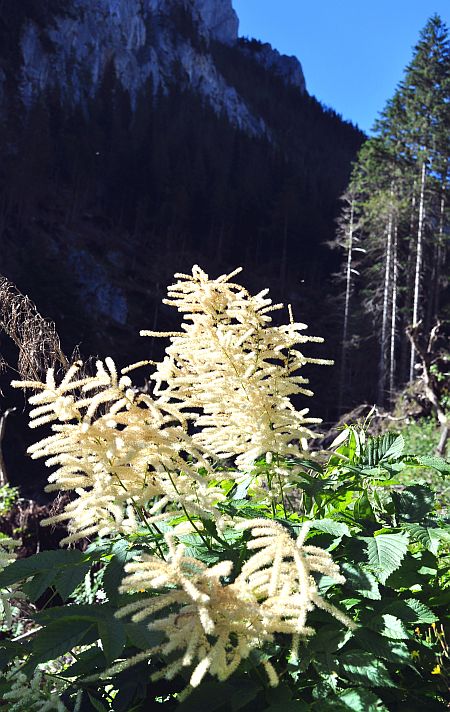 Auf geht´s nun, hinein in das Seitental; neben dem Weg Wald - Geißbart (Aruncus dioicus). Dank an Robert Hansmann für die Hilfe bei der Identifizierung!