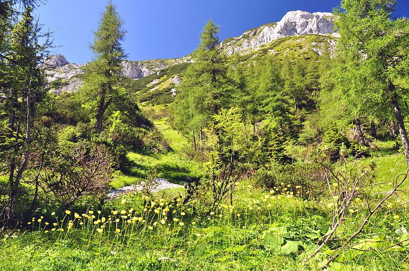 Eine Seltenheit im Kalkgebirge: ein fließender Bach bis in mittlere Höhen.