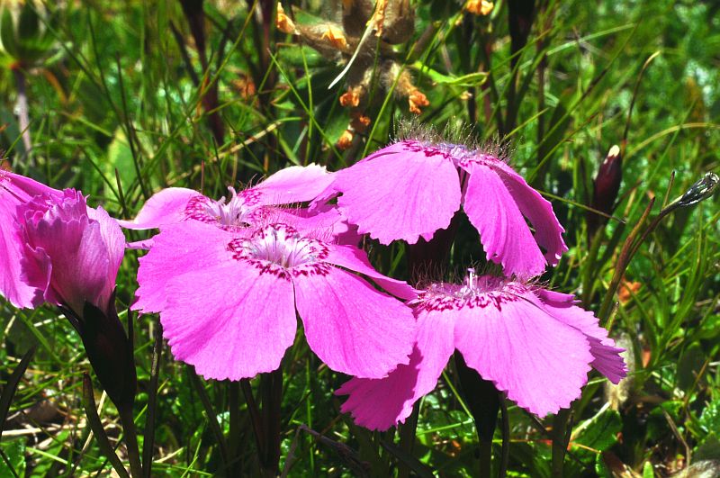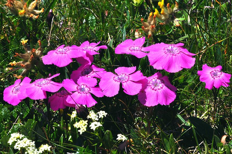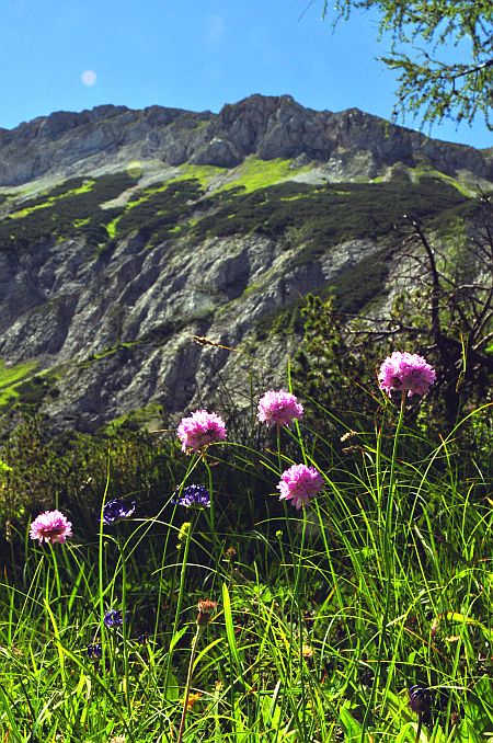 Auch Alpen - Grasnelken (Armeria alpina) findet man schon - man sieht, wir nähern uns der Vegetation des Schneealpenplateaus.