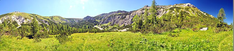 Am Melkboden, der Talgrund unseres Tals. 270 Grad Panoramabild - hierher oder ins Bild klicken für eine größere Darstellung.