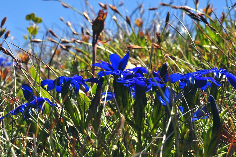 Frühlingsenzian (Gentiana verna) blüht hier in großen Mengen.