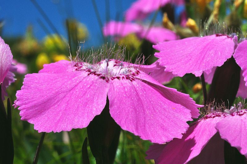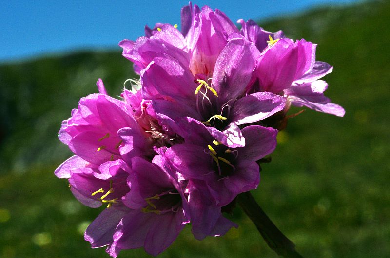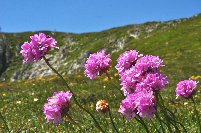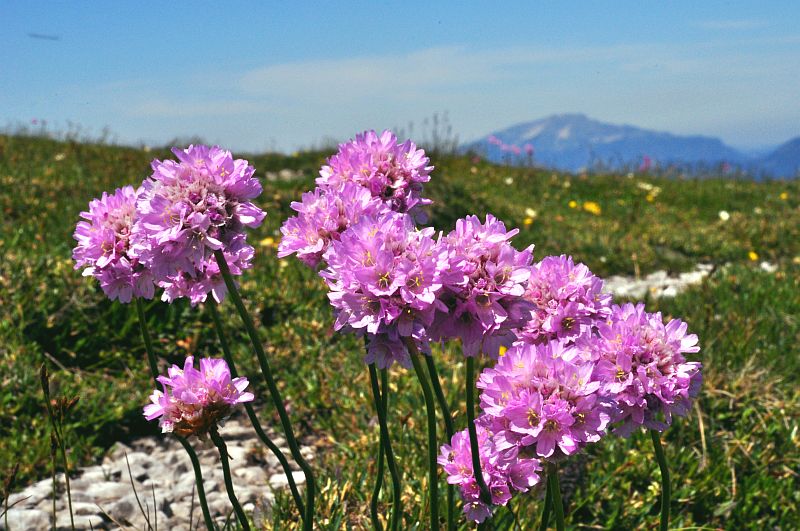 Alpen - Grasnelken (Armeria alpina), auf dem Hochplateau in großer Zahl zu finden.