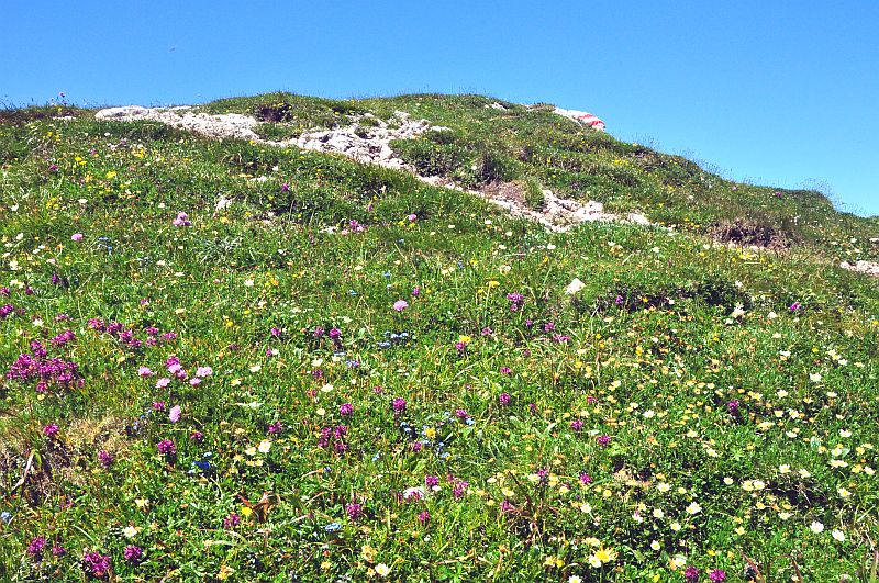 Bunte Blumenwiese am letzten kurzen Anstieg zum ...