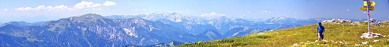 Blick über das Schneealpenplateau, ganz hinten der Windberg. Jetzt sind es nur mehr 5 Minuten zum Lurgbauer.
