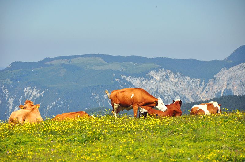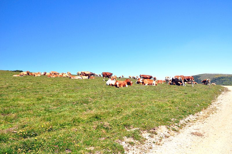 Endlich oben - und es breitet sich eine große flach - hügelige Landschaft aus: das Schneealpen - Plateau, auf Höhen zwischen 1.700 und 1.900 m gelegen.