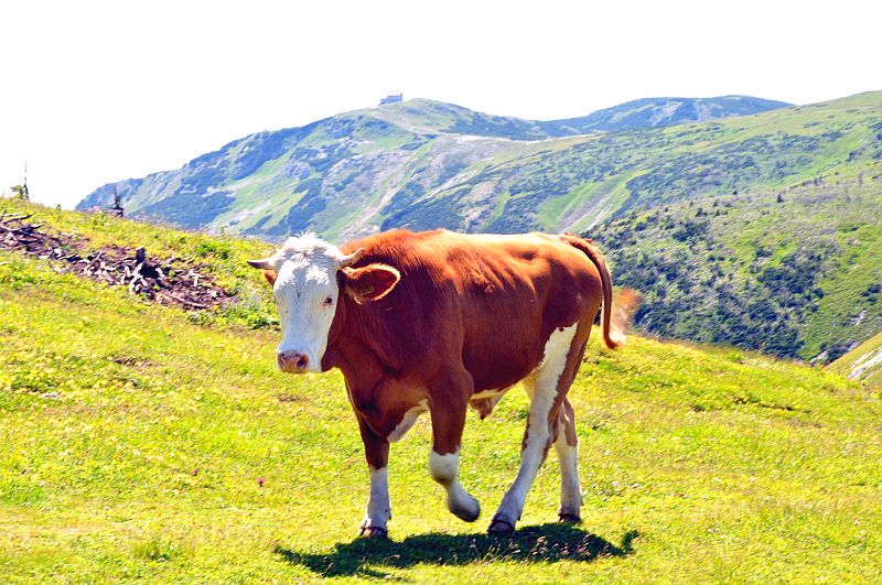 Los geht´s, ab zur Tränke. Im Hintergrunbd das Schneealpenhaus.