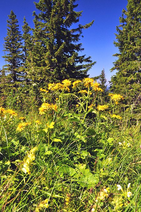 Noch einmal (ich hoffe, die Bestimmung ist richtig) Berg - Greiskraut (Senecio subalpinus) - oder doch Doronicum? Ich werde in Hinkunft mehrere Bilder, auch von anderen Pflanzenteilen machen müssen, um die Bestimmung zu sichern.