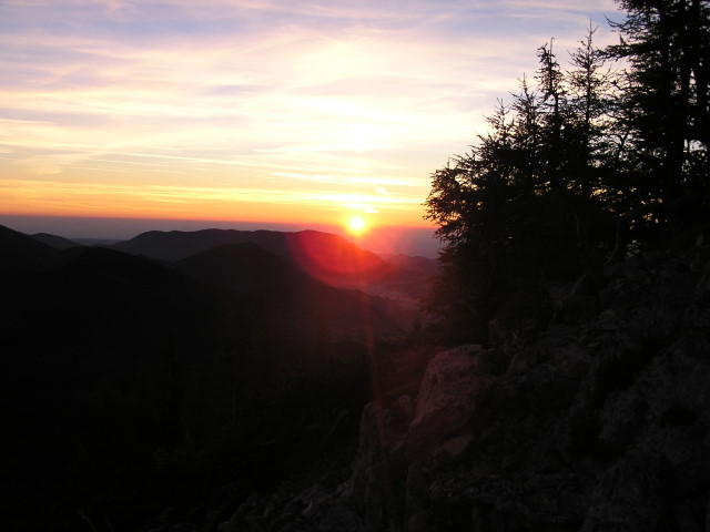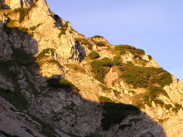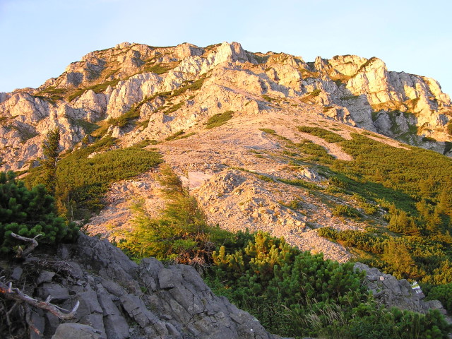 An diesem Tag sind wir bereits um 5.30 von Losenheim (ca. 831 m) weggegangen. Die erste halbe Stunde mussten wir Stirnlampen verwenden. Der Weg führte uns über die Sparbacherhütte (1.248 m) und den Fadensteig zur Fischerhütte am Kaiserstein (2.048 m) und weiter zum Klosterwappen, mit 2.075 höchster Punkt.