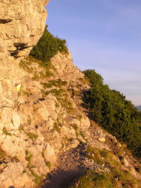 Über Schutthalden zu den ersten Felsabstürzen des Fadensteigs