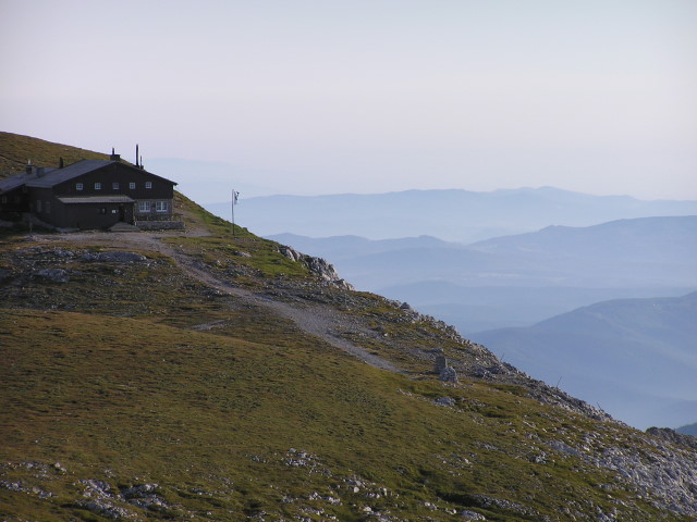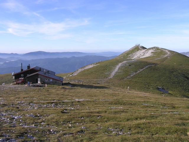 Das Schneebergplateau mit dem Damböckhaus (1.810 m) im Hintergrund