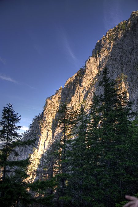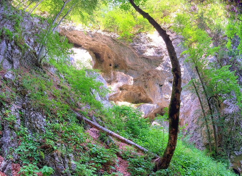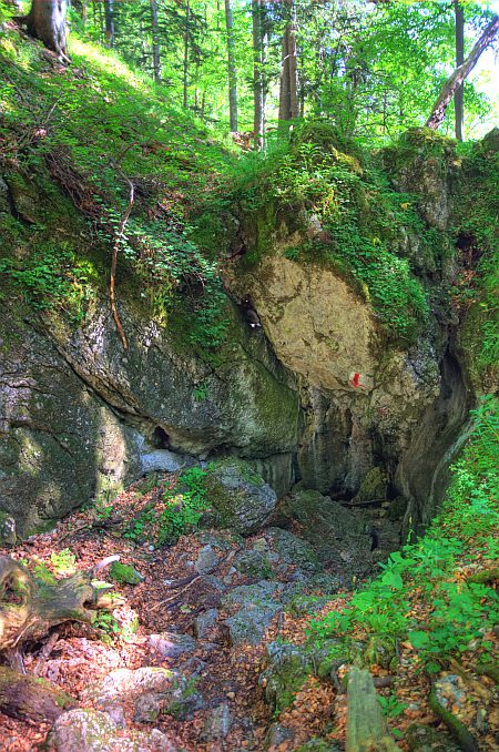 Linker Hand diese steile Felswand mit Aushöhlungen - die Klamm lag mal wesentlich höher.
