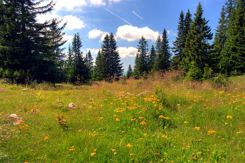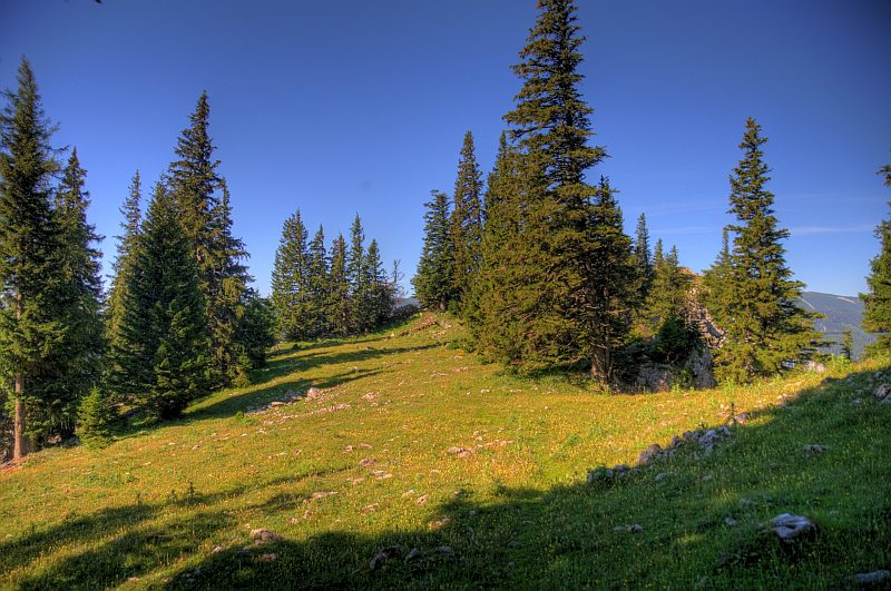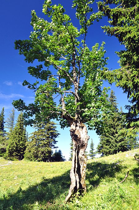 Unten beim Ochsenboden, unweit des Fleischer - Gedenksteins. Hier breitet sich die Hochfläche des Kuhschneebergs aus.
