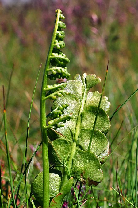 Diese Pflanze gehört zu den Farngewächsen: die Mondraute (Botrychium lunaria)