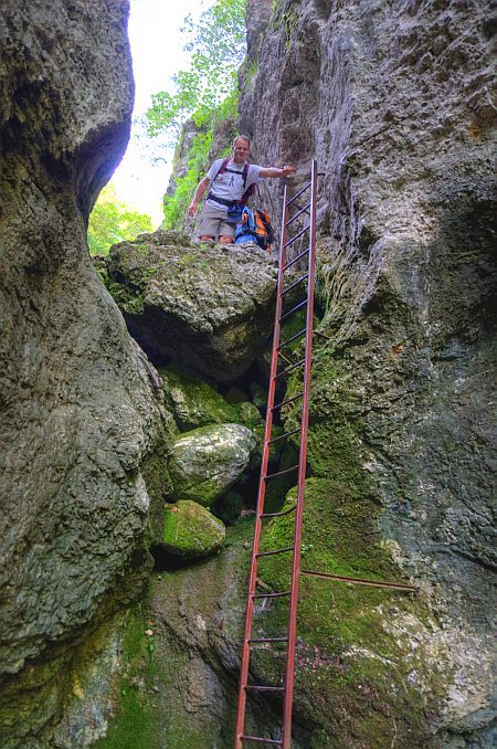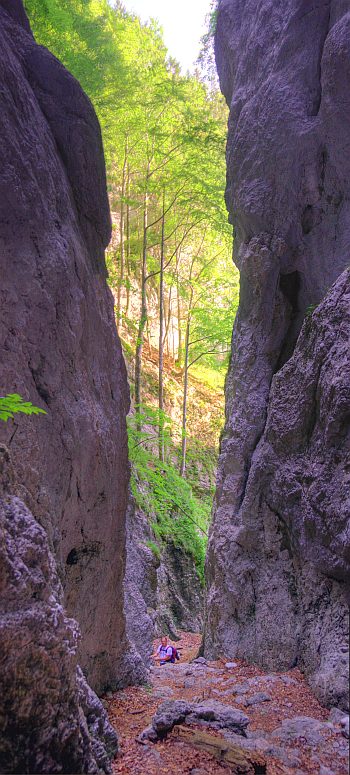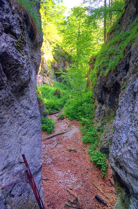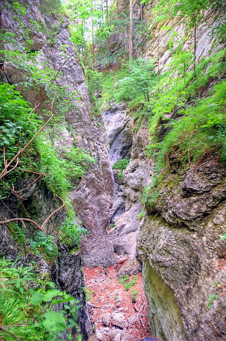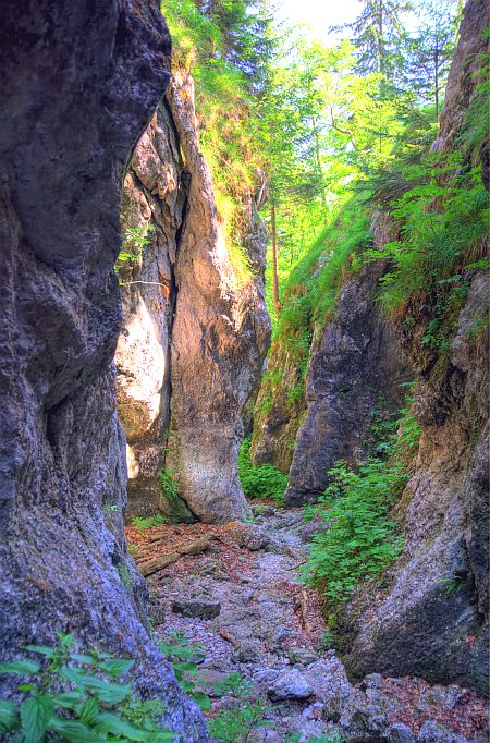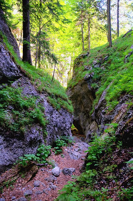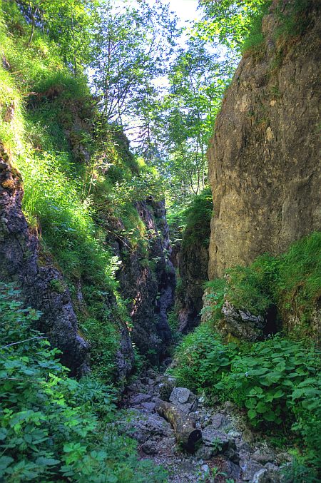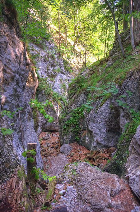 Im oberen Teil ist die Klamm zwar eng, aber die Wände noch nicht so hoch.