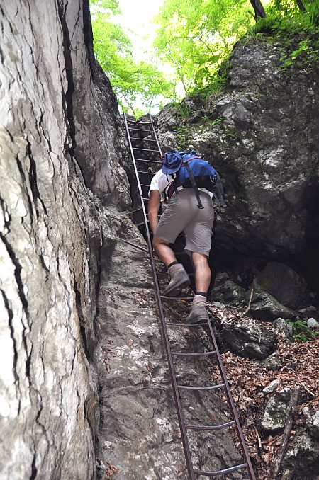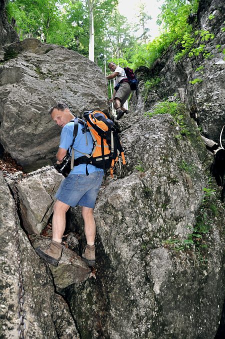 Immer wieder mit Ketten gesicherte, wenn auch leichte Kletterpassagen.