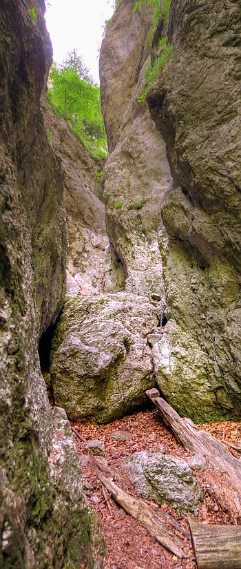 Im unteren Teil sind die Felswände beidseits dann schon so hoch, dass ich für diese Ansichten jeweils mehrere Bilder zusammensetzen muss.