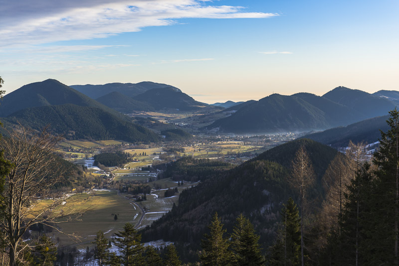 Bis zur Breiten Ries geht der Weg fast nur durch den Wald. Hier der einzige Platz mit Aussicht auf Puchberg.