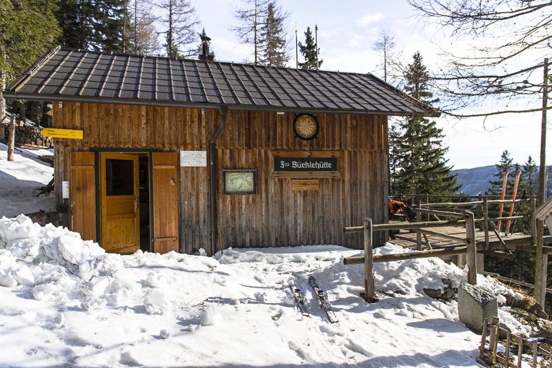 Am Rückweg die geplante Rast bei der Bürklehütte, einer kleinen Bergrettungshütte. Als Bergretter hat Koarl natürlich einen Schlüssel.