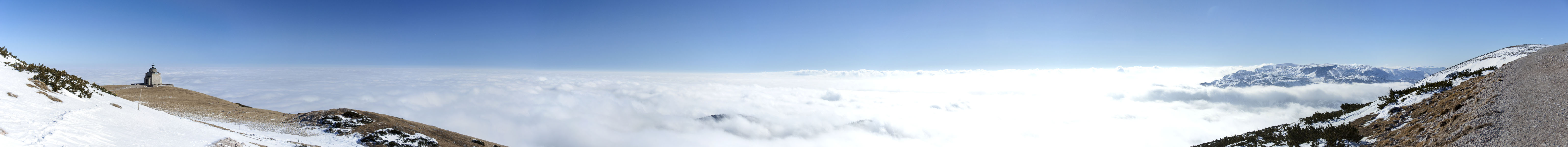 Once more a panoramic picture of the St. Elisabeth church. Far right the Rax.