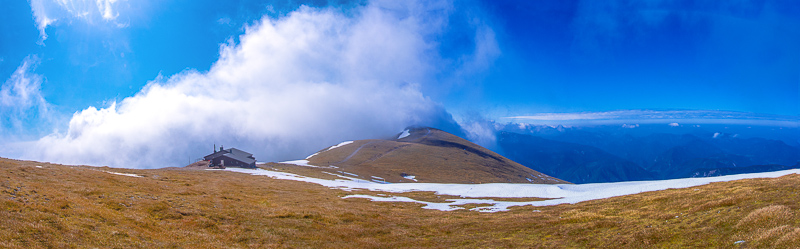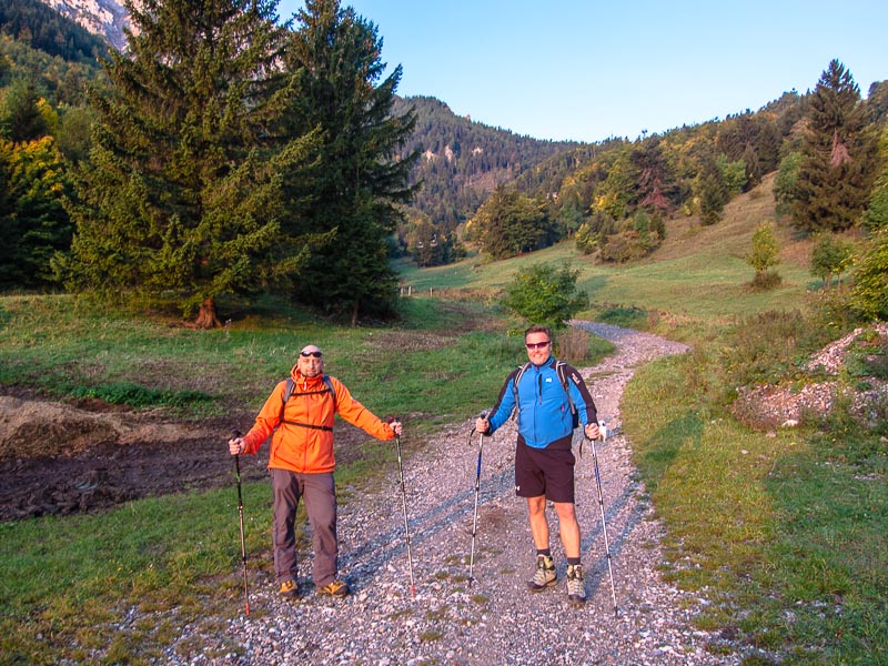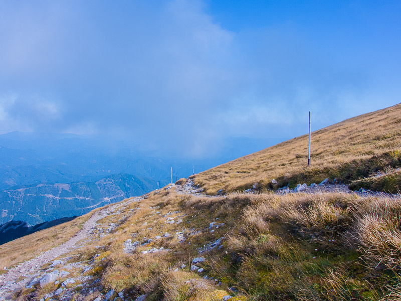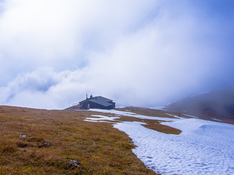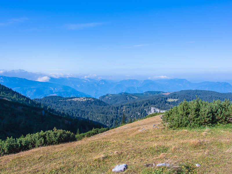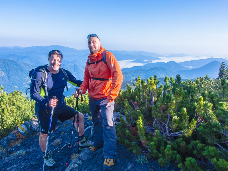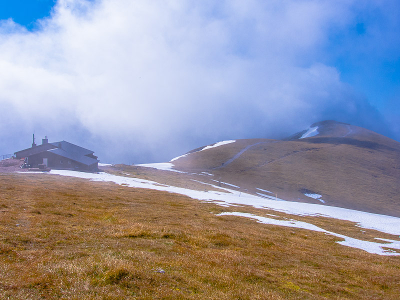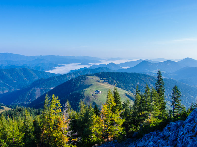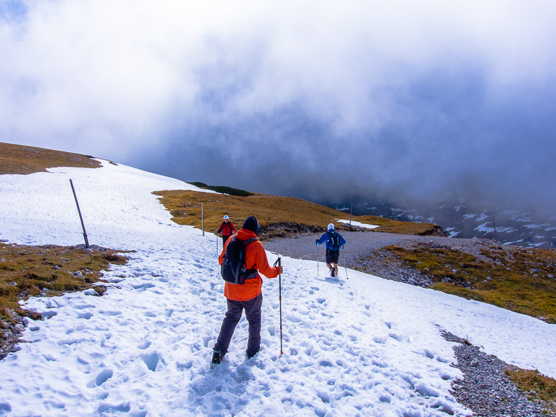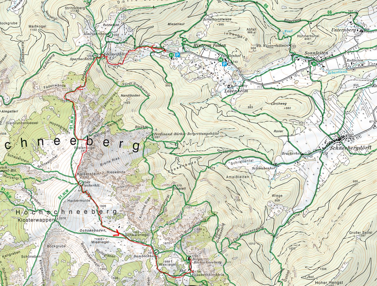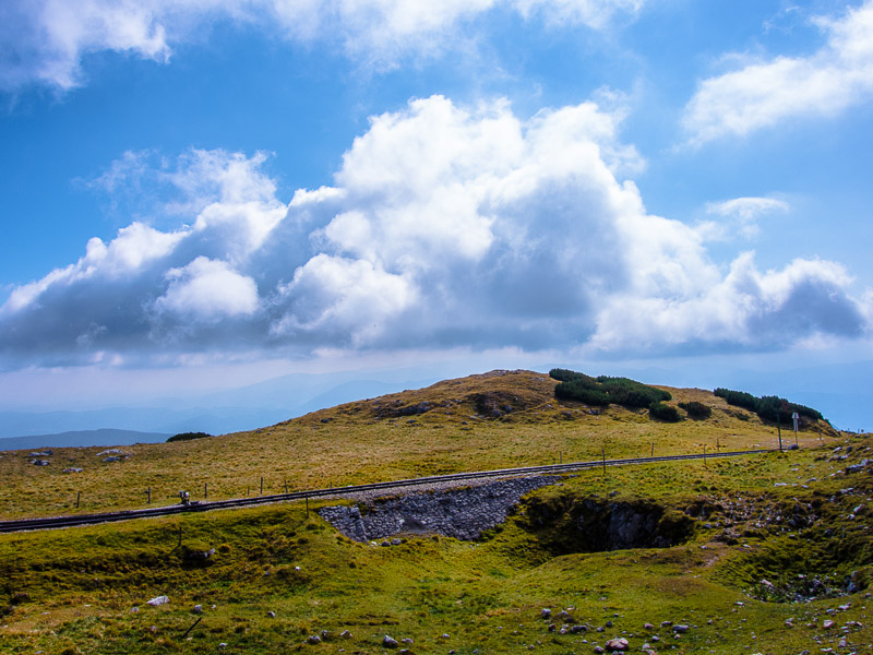 I follow Mario Hössl´s invitation to a walk on Schneeberg. So, I meet with Mario and Hans-Jürgen Pietsch at 7 a.m. in Puchberg near the Voka gallery, where we park two of our cars and take Mario´s car to drive to Losenheim.From there, we walk up the Fadensteig to the Fischerhütte, and down to the railway summit station for the way down.
