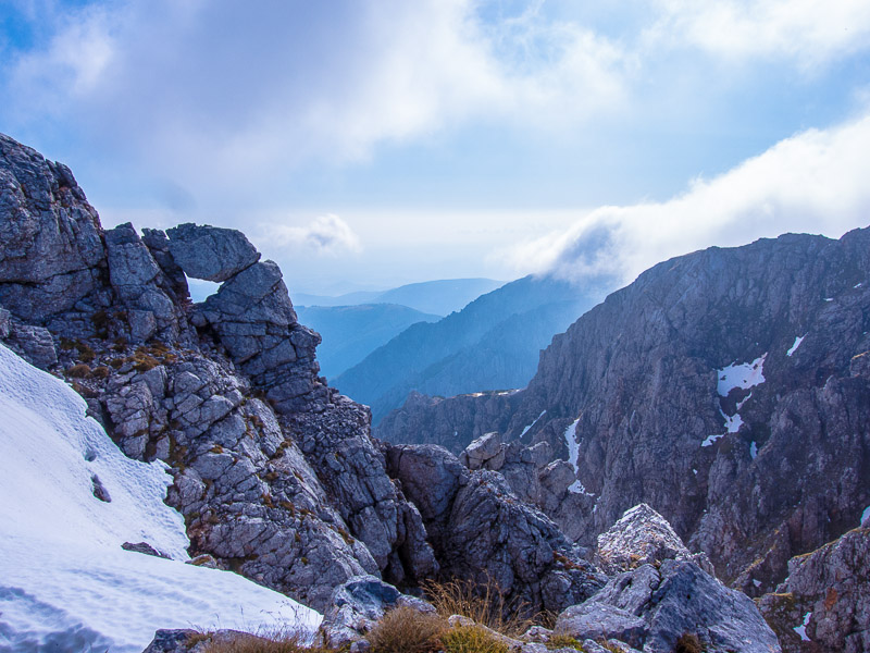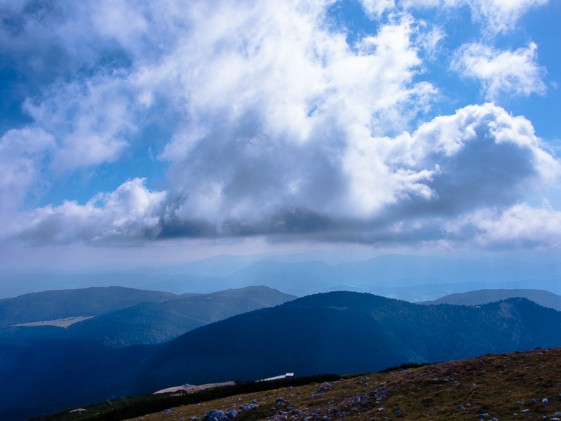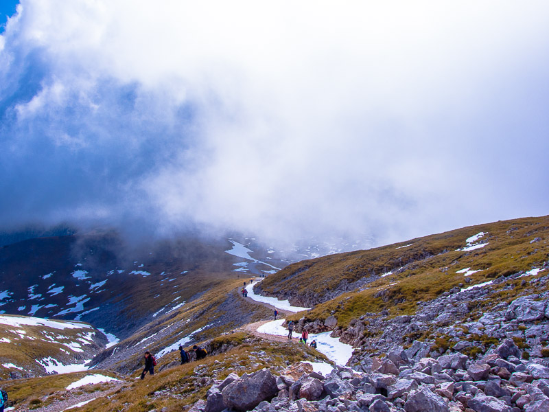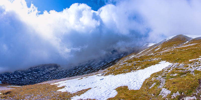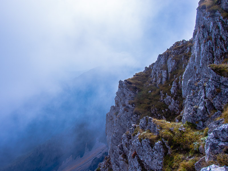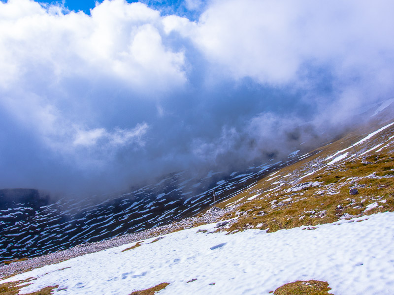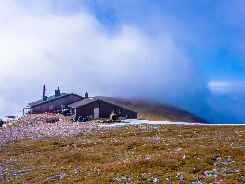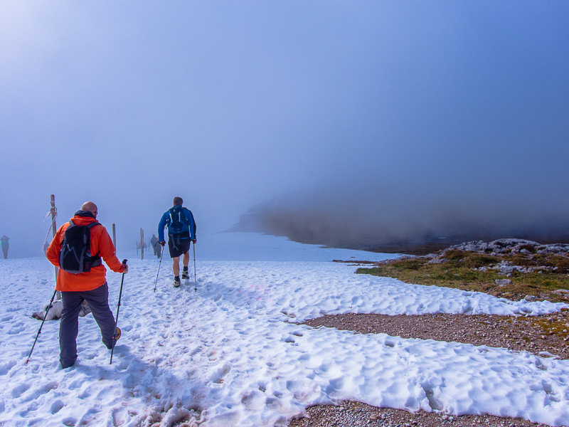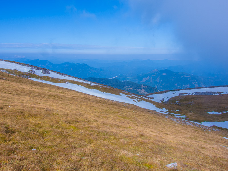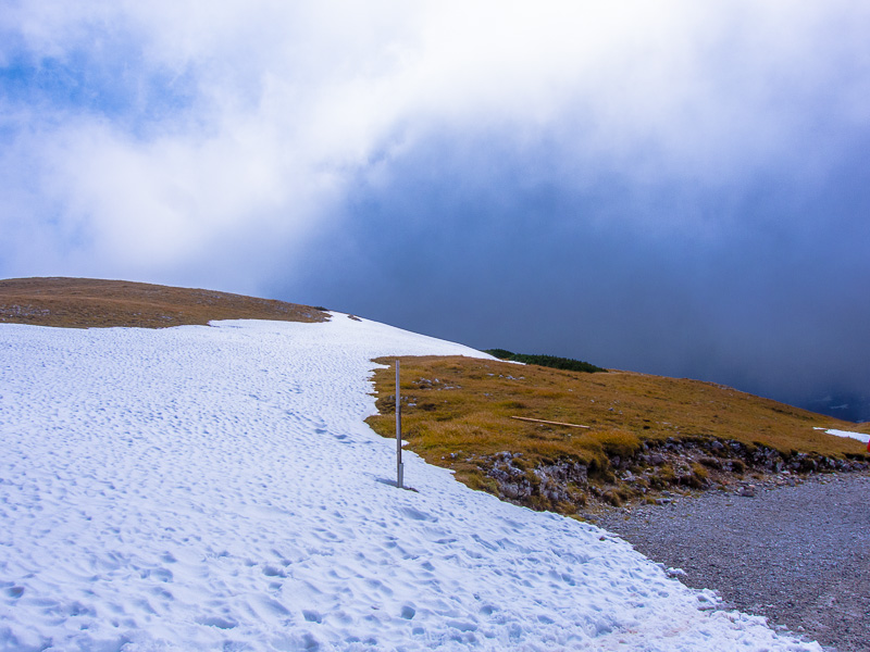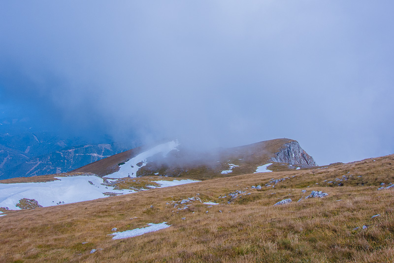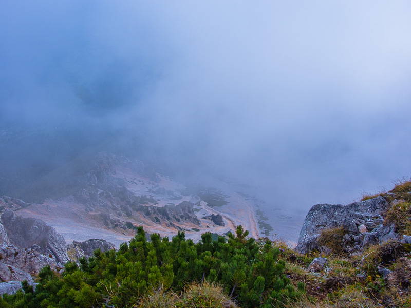 The mist is changing a little bit, but roughly stays stationary - on the Klosterwappen, the true summit of the Schneeberg (2.075 m).