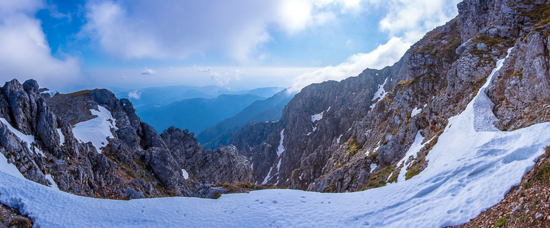 Panoramic view of the "gateway" to the Breite Ries. Click here or into the pictures for a larger display.
