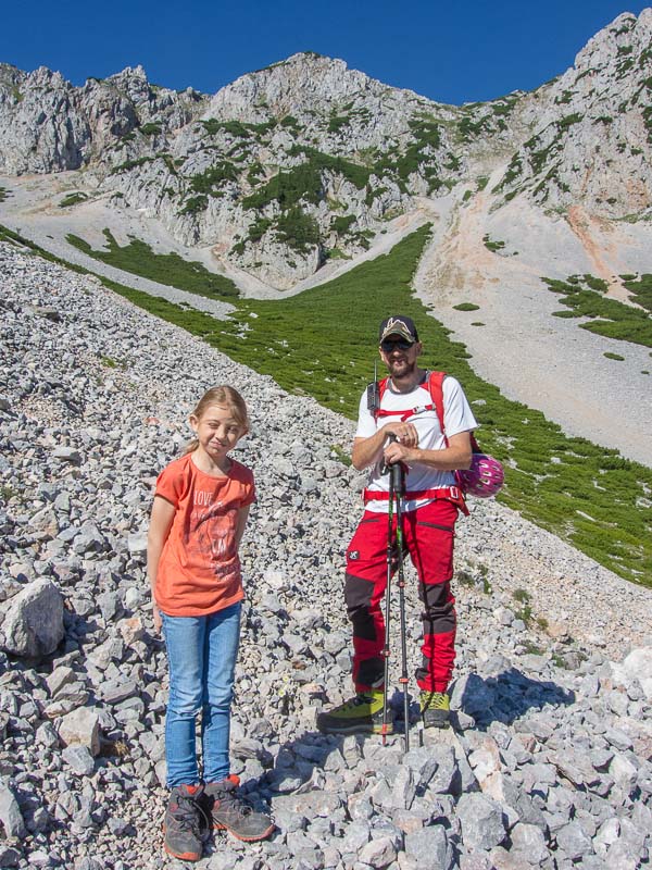 We are approaching the Krumme Ries, one of the many long screes on Schneeberg. Hans Jürgen and daughter Christiane.