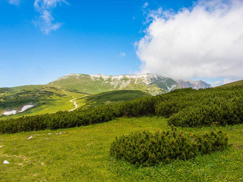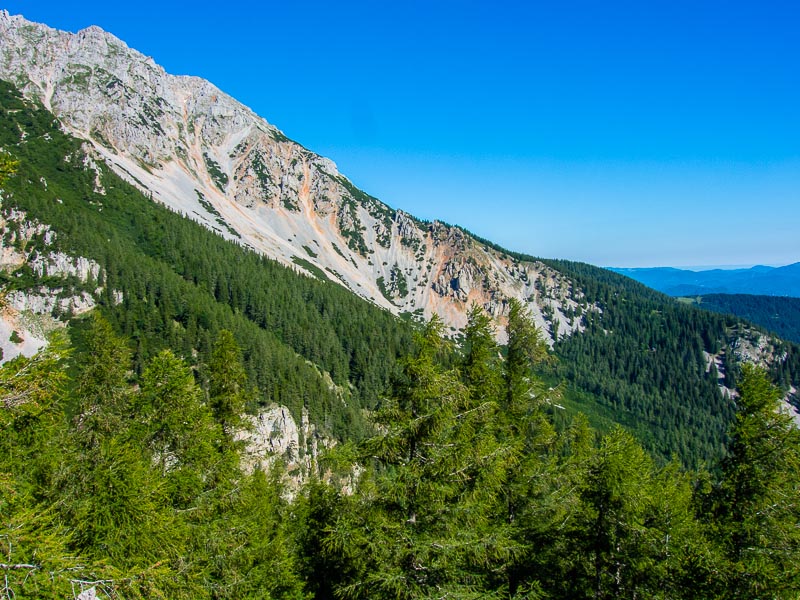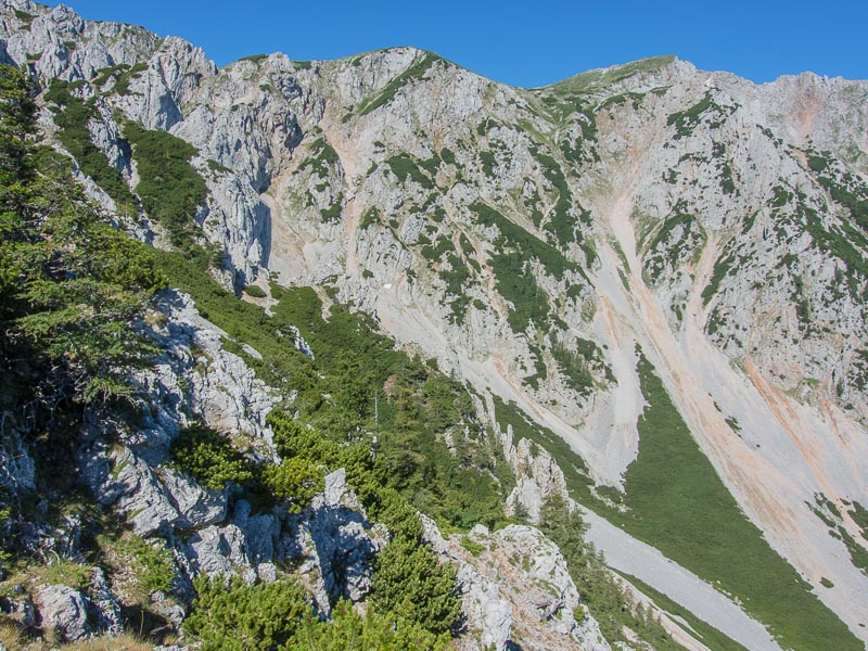 After lunch at the Damböck house, we take the short cut through the alpine dwarf pines - with a view back to the Klosterwappen - ...