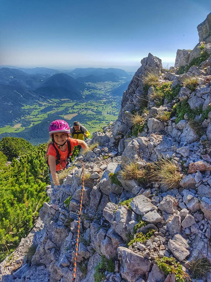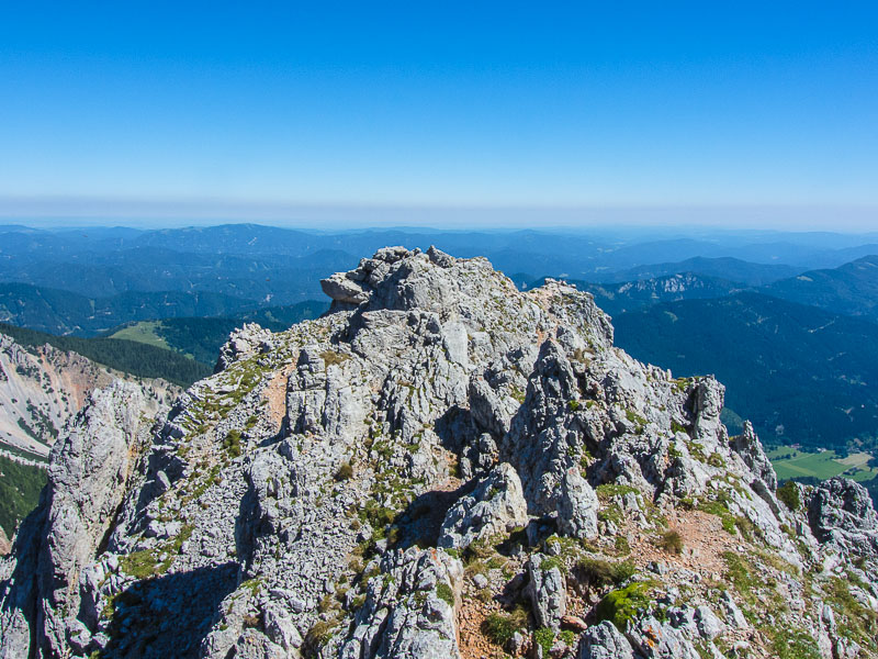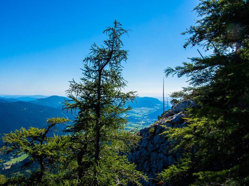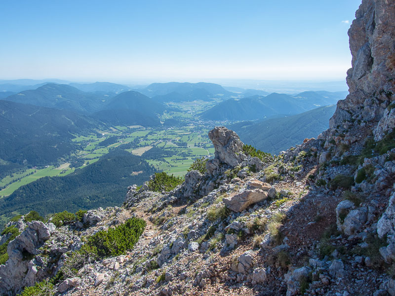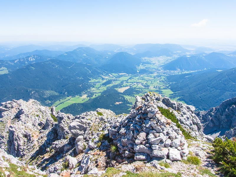 A cairn at the cliff-top, and Puchberg is really far down now.