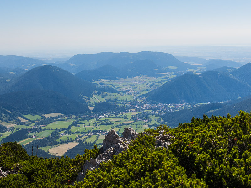 Puchberg and Pfennigbach, with Hohe Wand in behind. In the far distance, lake Neusiedel is glistening.