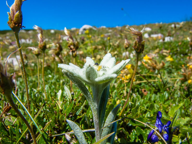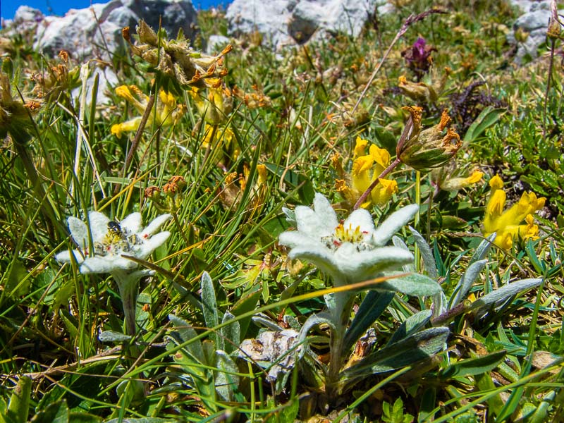 After a few steps we find some Edelweiß (Leontopodium nivale) in the grass.