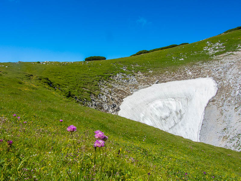 ... dolina, still containing residual winter snow. In its surrounding, the vegetation is like mid June.