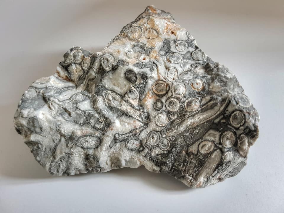 Here in the scree, Christiane has found this stone, interspersed with numerous fossils (this picture by Hans Jürgen Pietsch).