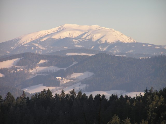 The view to Schneeberg from the closed road to Metro/OEAMTC. Weikersdorf in the foreground.
