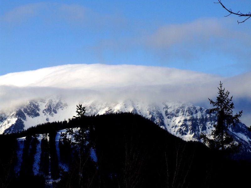 Es geht jetzt den Kamm entlang weiter, zunächst auf den Öhler. Am Kamm riesige Wächten alten, gefrorenen Schnees, über den man wunderbar gehen kann, ohne einzusinken.