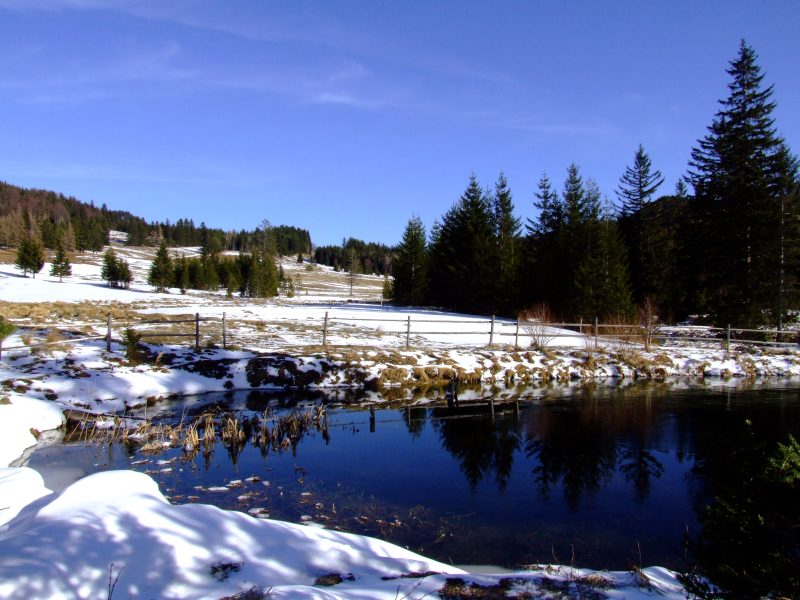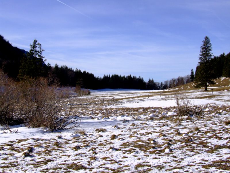 Die Mamauwiese auf einer großen Hochfläche. Im Sommer schaut´s hier ganz anders aus ...