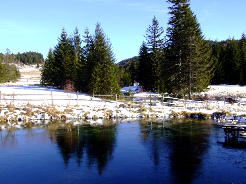 ... und auch eine dünne Eisschichte auf diesem kleinen Fischteich.