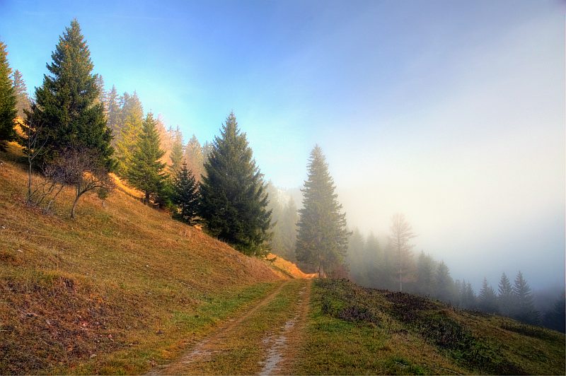 Am Beginn der Alm ist auch der Nebel gerade zu Ende.