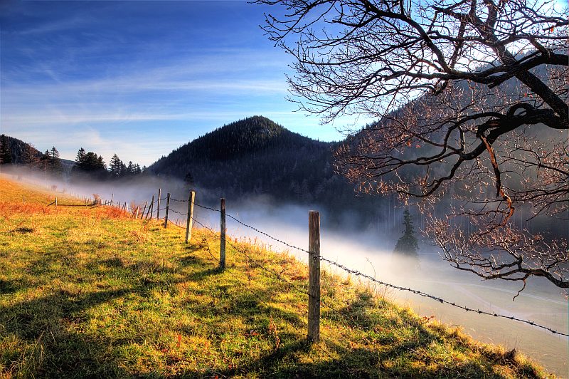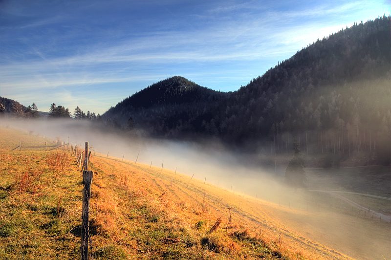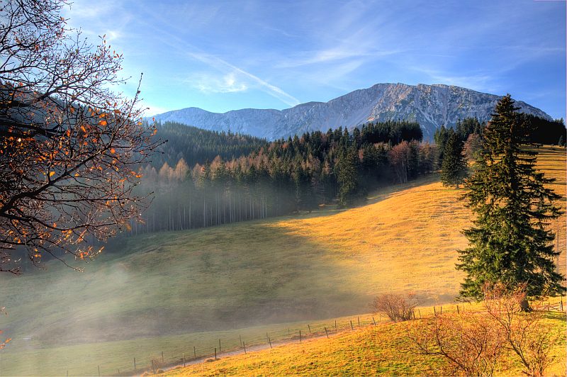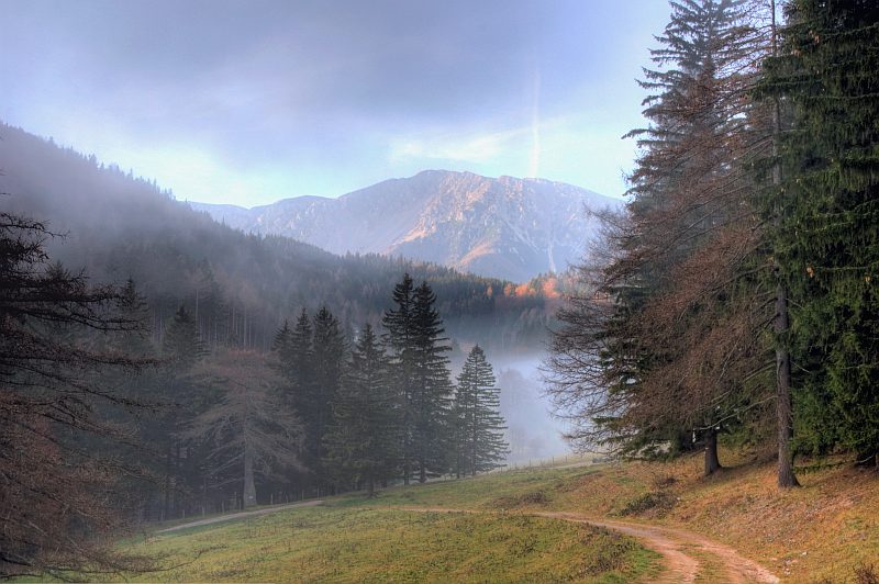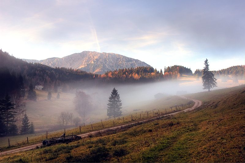 Am Wochenende soll der Nebel und das ruhige Wetter zu Ende gehen, also packe ich ein letztes Mal meine Kamera und ziehe in die Berge. Nachdem ich in der Früh nach Ternitz muss, fahre ich danach gleich das Sierningtal hinauf nach Puchberg, und weiter bis zum "Öhlerhansl", einem einsamen Hof im obersten Sierningtal, von wo ich zur Schoberalm wandere.
