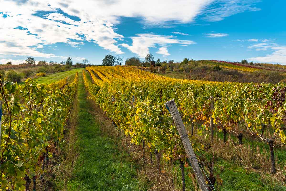 We meet up with other Papillon owners near the railway station in Schützen, then everybody drives to Oggau - except me: I leave the car shortly after Schützen and walk over the Goldberg to Oggau.