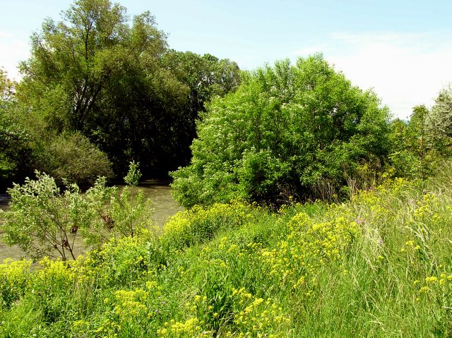 Das teilweise von Weiden und Erlen bewachsene Schwarzaufer ist mittlerweile überwuchert mit Gras, Brennesseln und hochwachsenden Blumen