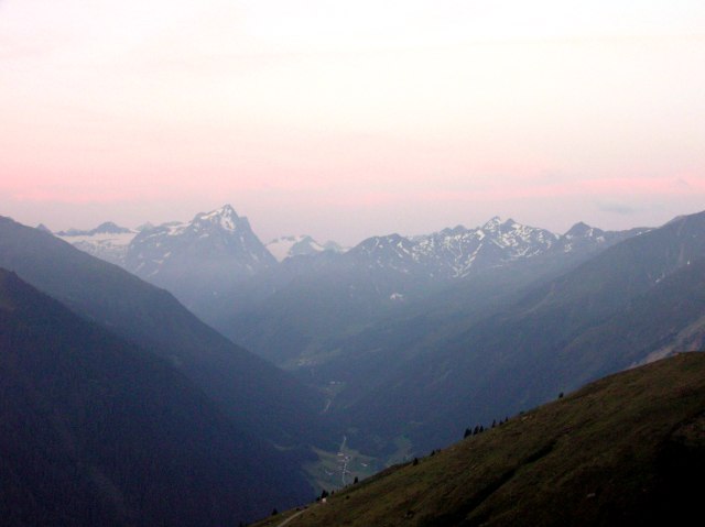 Aufstehen um 4 Uhr - da ist gerade das erste Morgenlicht über Innsbruck zu sehen, Abfahrt um 4.30 Uhr.