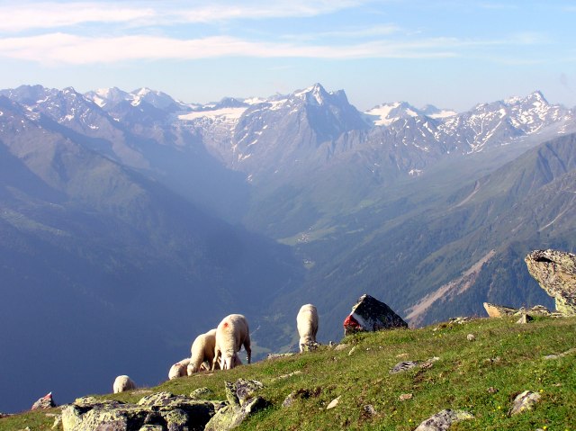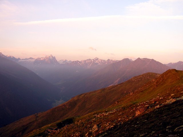 Der Altbauer des Bauernhofes, in dem ich wohne (der auch noch Bürgermeister von Sellrain ist) geht des morgens auf die Jagd. In seinem Geländeauto kann ich bis zur Waldgrenze auf ca. 1800 m mitfahren, was den Aufstieg zum Rosskogel (2.646 m) deutlich verkürzt. Über die Krimpenbachalm und das Tiefental geht der Weg wieder zurück nach Sellrain/Tauegert.