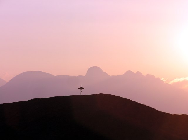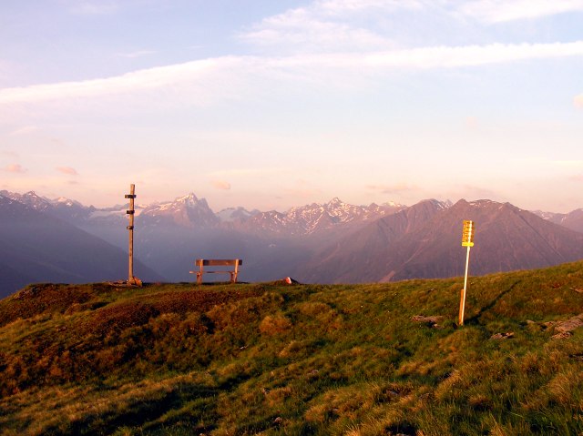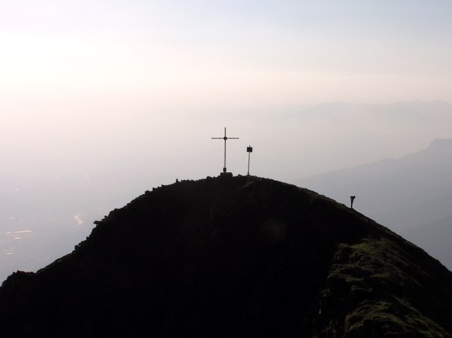 Das Gipfelkreuz des Rosskogel steht am Ostgipfel