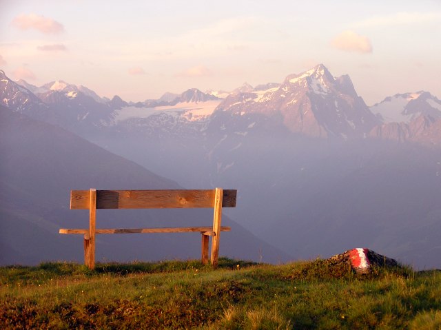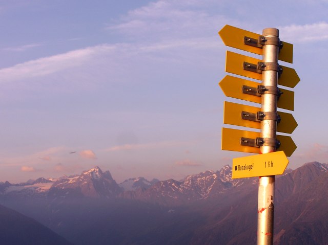 Bei der nächsten Weggabelung, Blick zu den Stubaier Alpen