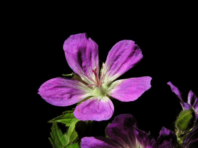 Tief unten im Graben des Tiefentals blüht neben dem Bach dieser Wald - Storchschnabel (Geranium sylvaticum)