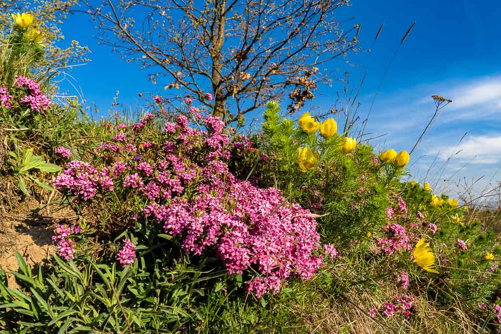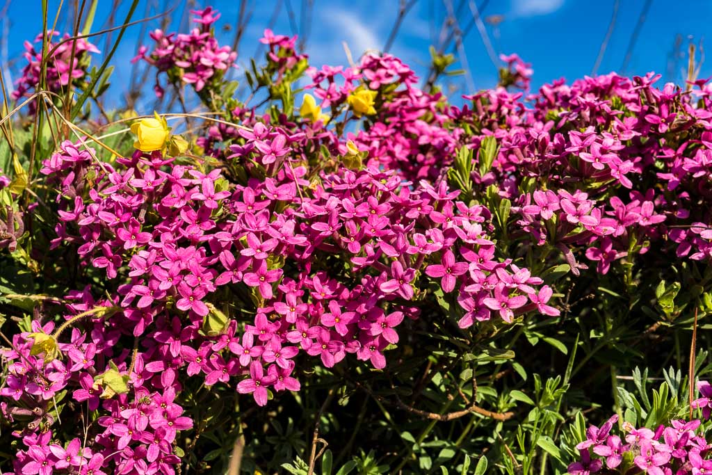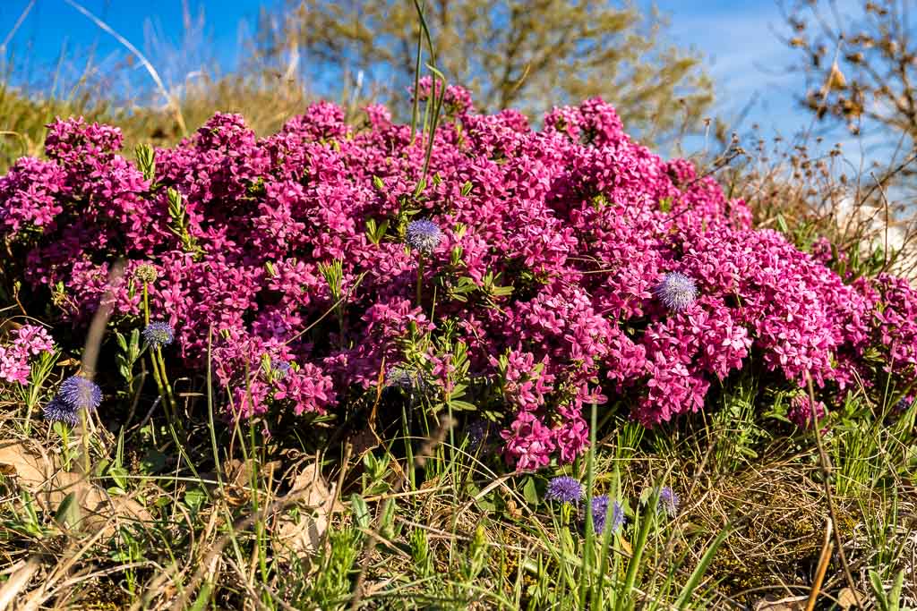 Die eigentliche Attraktion des heutigen Tages sind aber die riesigen Polster mit Steinröschen (Rosmarin Seidelbast, Daphne cneorum)